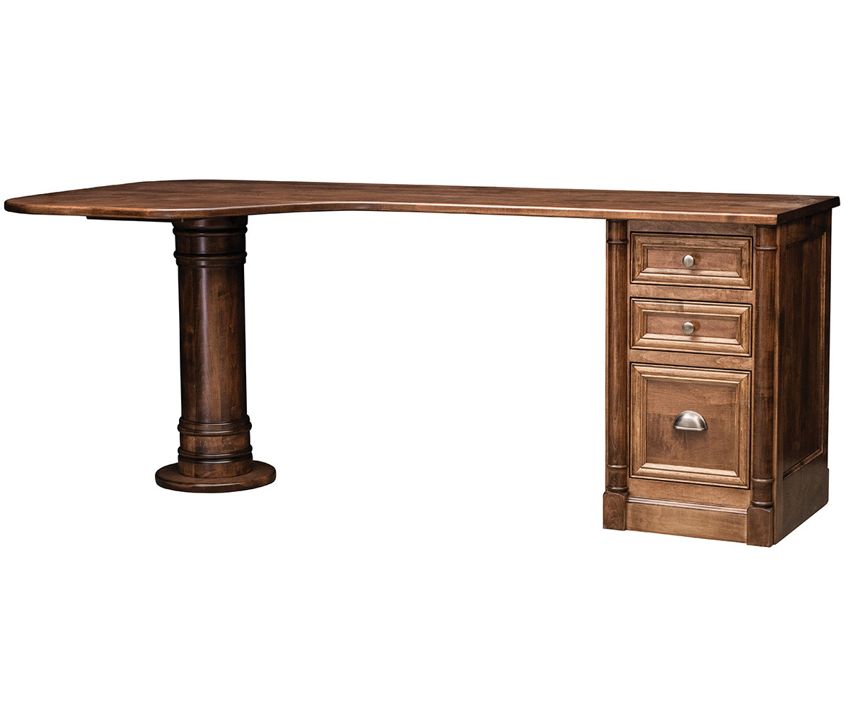 The rounded posts with solid wood construction gives a quality and timeless appeal for that executive or home office look. Beautifully designed with a lasting impression.